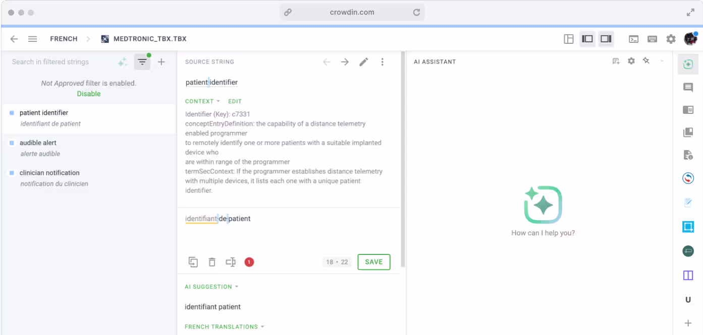 Crowdin is a localization platform enhanced by AI to make websites, apps, games, and other software multilingual. This solution is often adopted by agile development teams since it’s compatible with CI/CD. Used to translate games like Minecraft and websites like Kickstarter, this tool is highly rated for its reliable internationalization.
