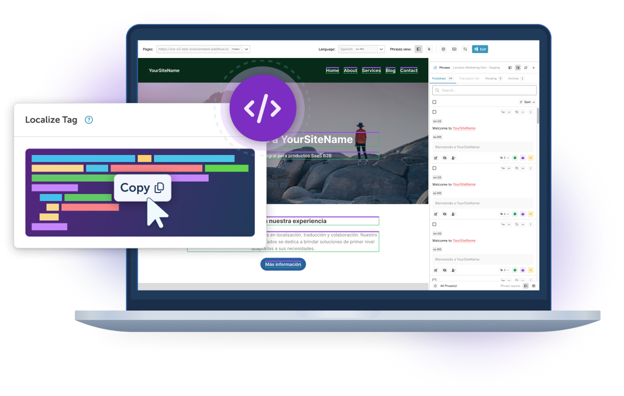 Localize’s AI-powered platform handles internationalization and localization end-to-end. From extracting content to managing translations to delivering a fully localized UI, Localize makes your web app globally ready—instantly. Focus on building great products, not wrangling i18n files.